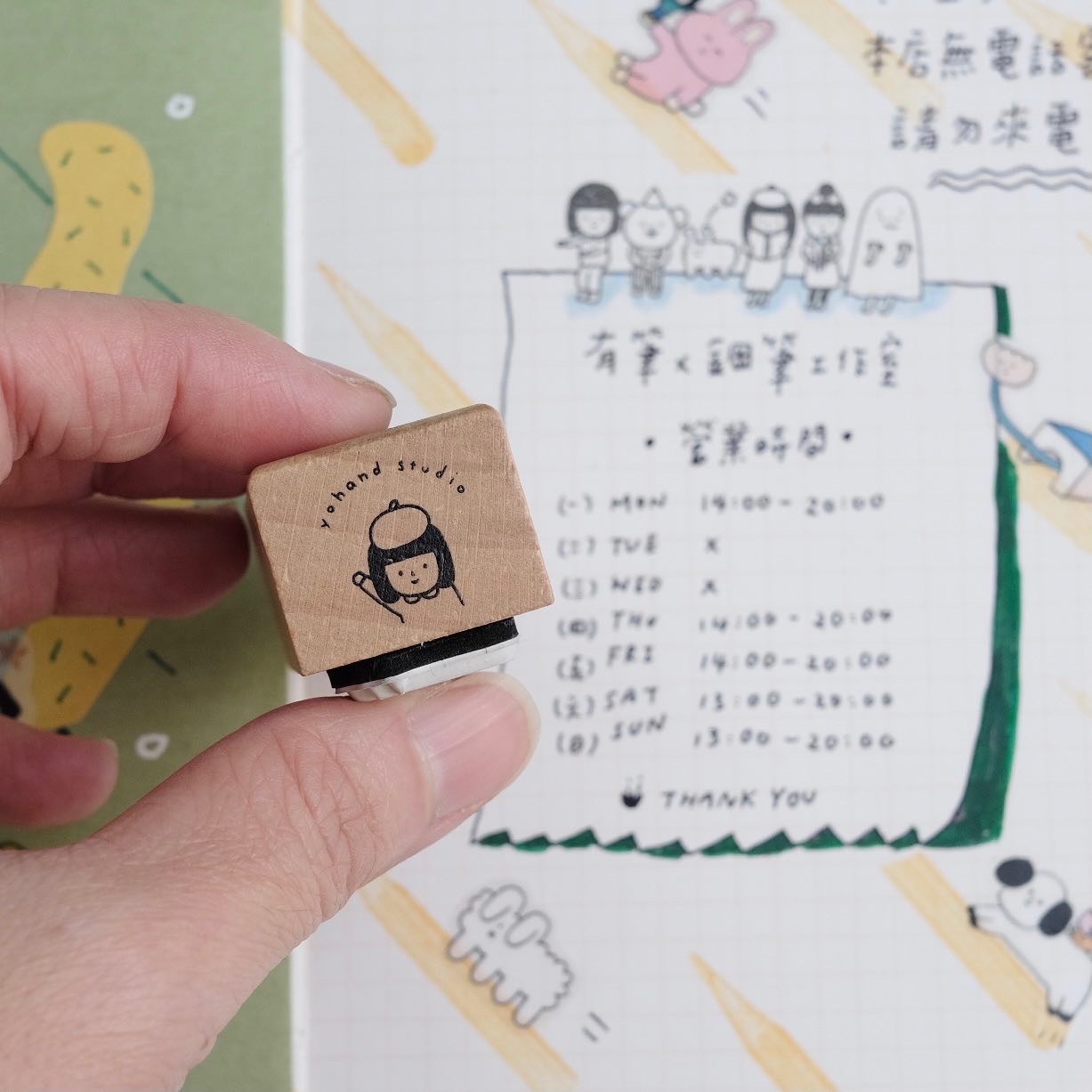 印面的橡皮有裁切好圖案,所以不怕會蓋到邊邊。