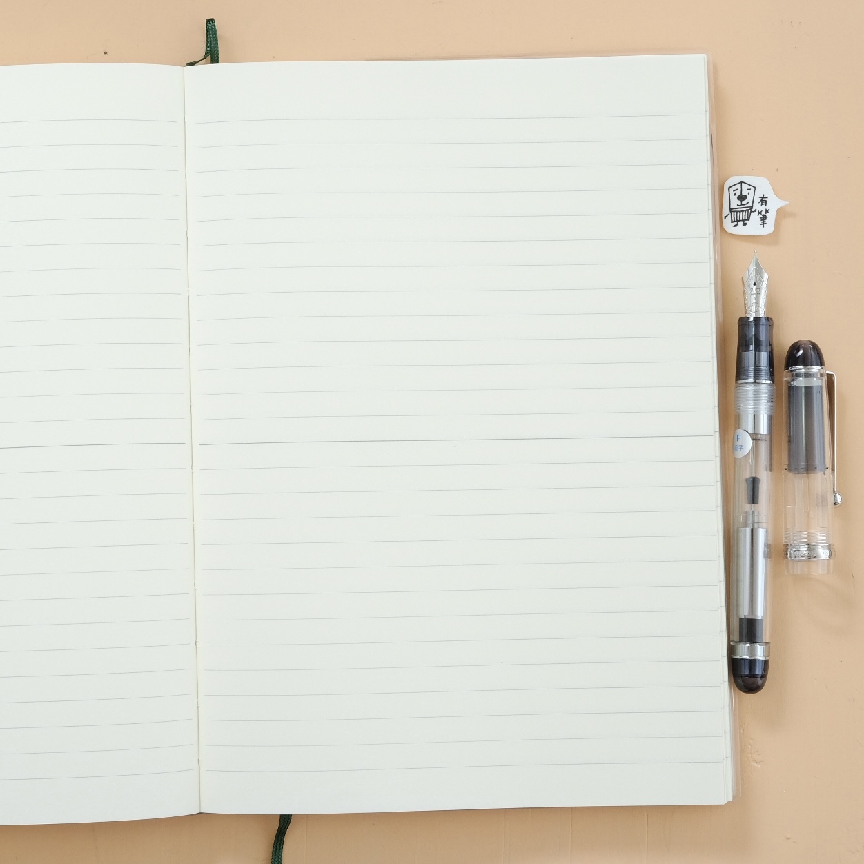 紙張採用奶油色的日本MD用紙,鋼筆寫感滑順,另有搭配的透明保護書套可以加購~