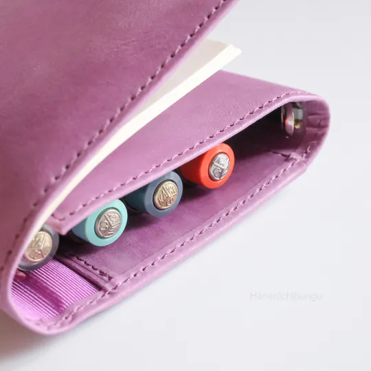 筆插是以牛皮加上鬆緊帶製成,最大可放直徑12mm的筆。