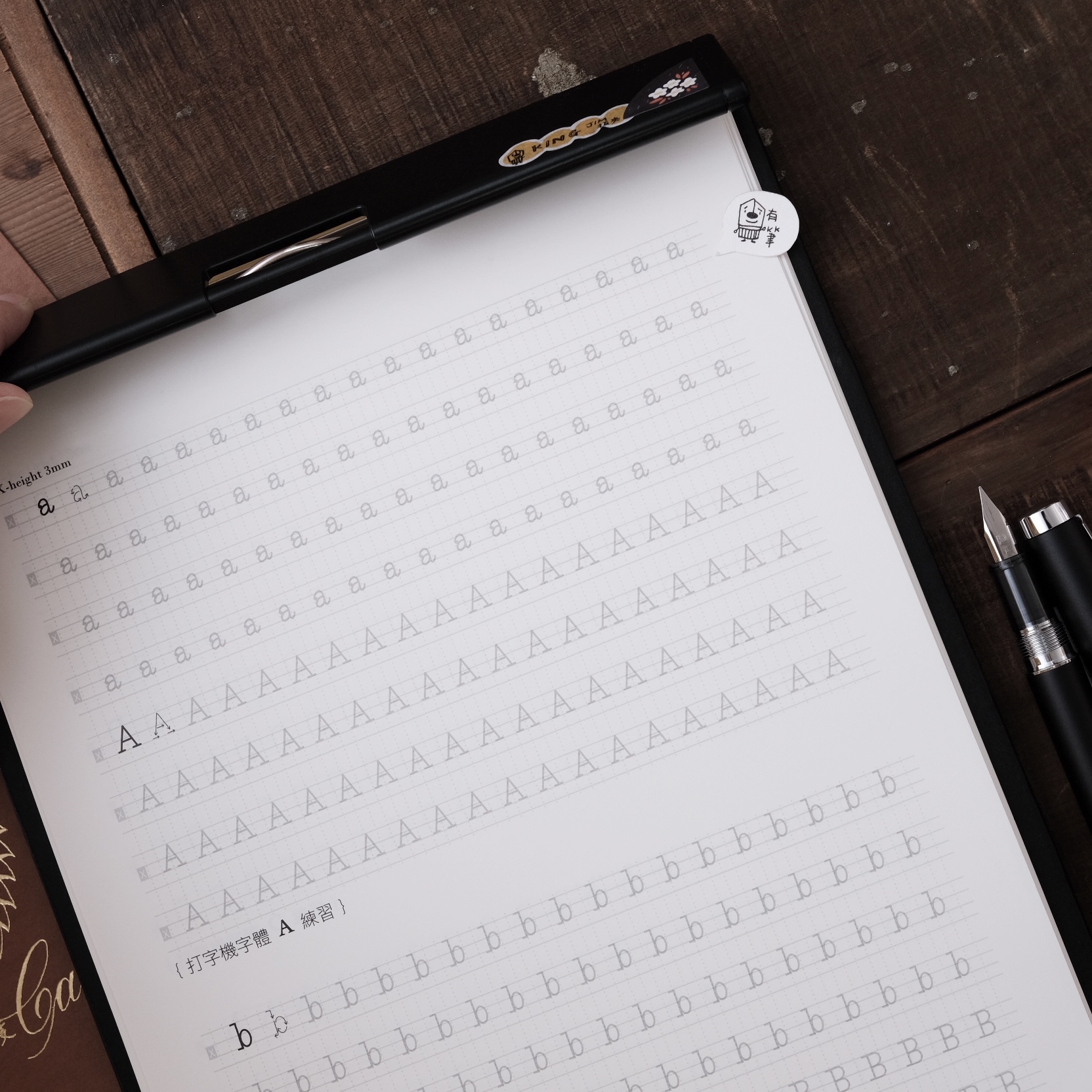 這三種字體使用的是平尖筆具,需先將筆尖轉動至45度角,然後擺好書寫姿勢,接下來轉動紙張,將字體45度角與筆尖對齊為止。