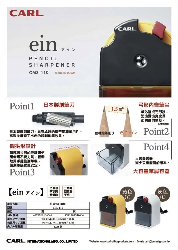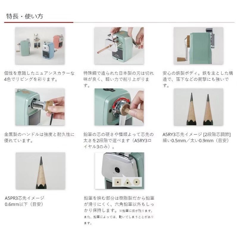 刀是削鉛筆機的生命,本機刀片Made in Japan,採用特殊鋼材,精度高、使用壽命長。