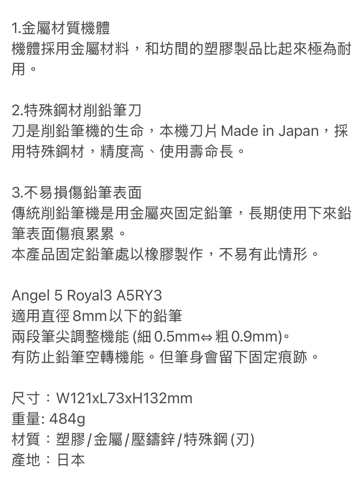 可削出筆芯粗細範圍: 0.5mm⇔0.9mm