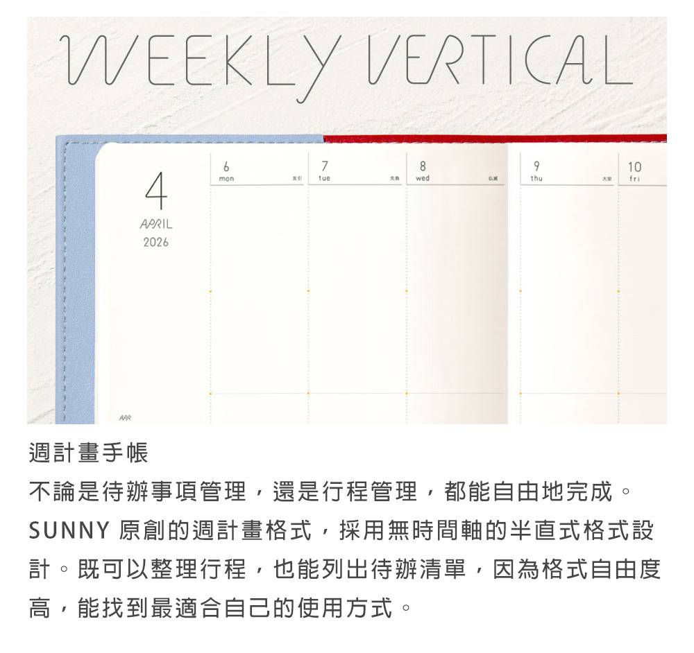 晨曦藍 2026 SUNNY 週計畫手帳 B6 磁扣式|IROHA 日本