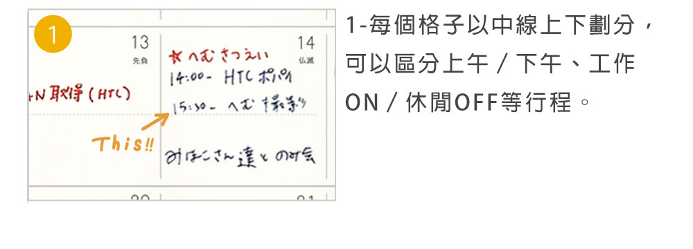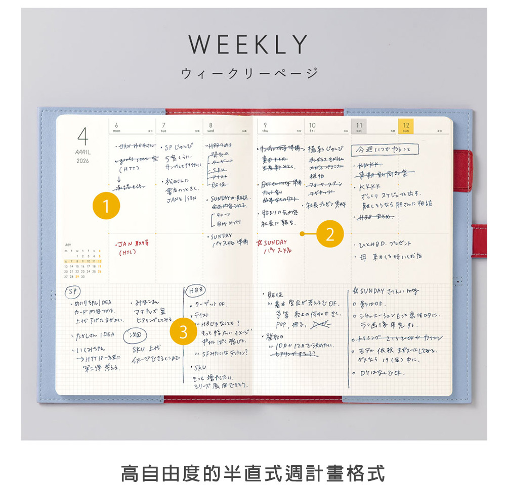 ・2頁一週的垂直式表格,上週下記超實用,能區分每日行程、待辦事項和備忘,展現高效筆記術!
