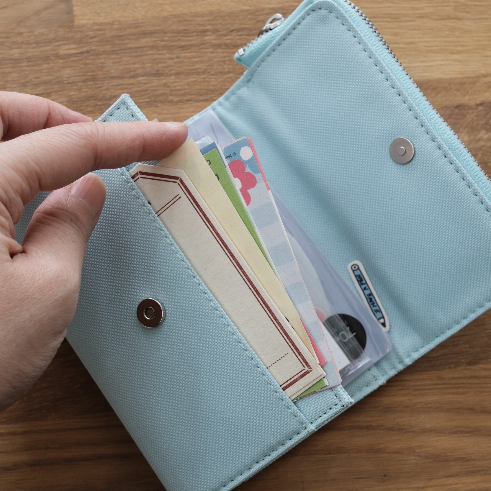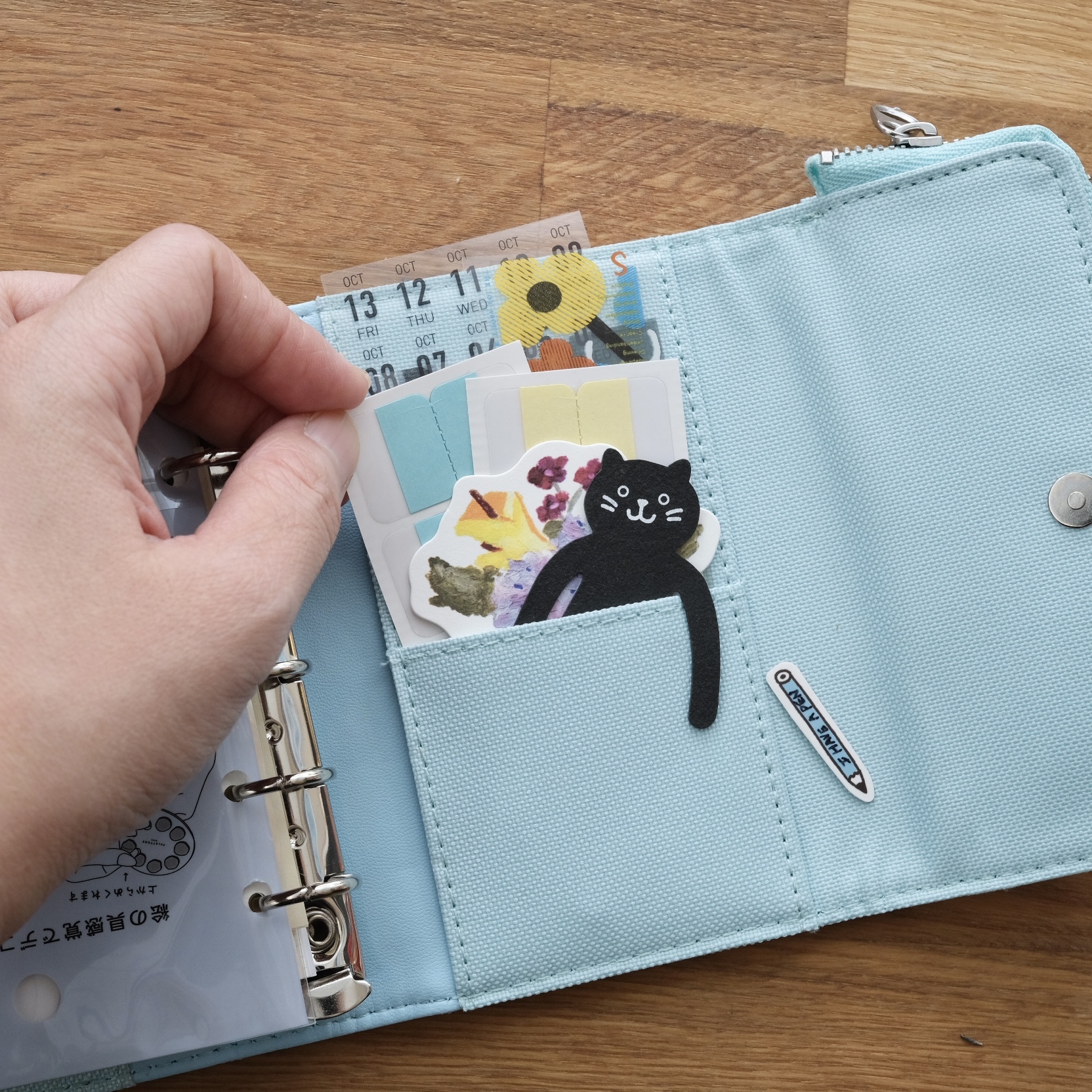 ● 附名片夾層與前口袋,貼紙、小卡收納更便利