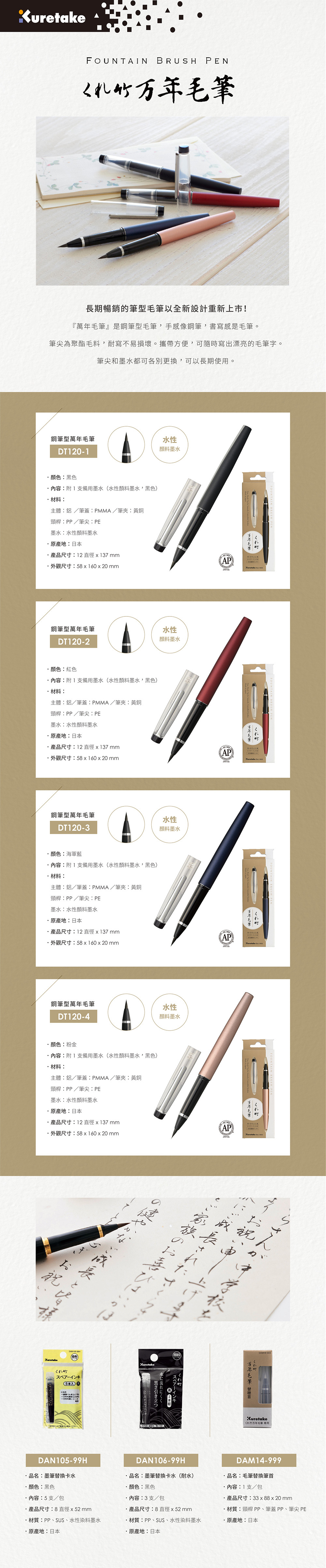 鋼筆型 萬年毛筆 黑色|吳竹 日本