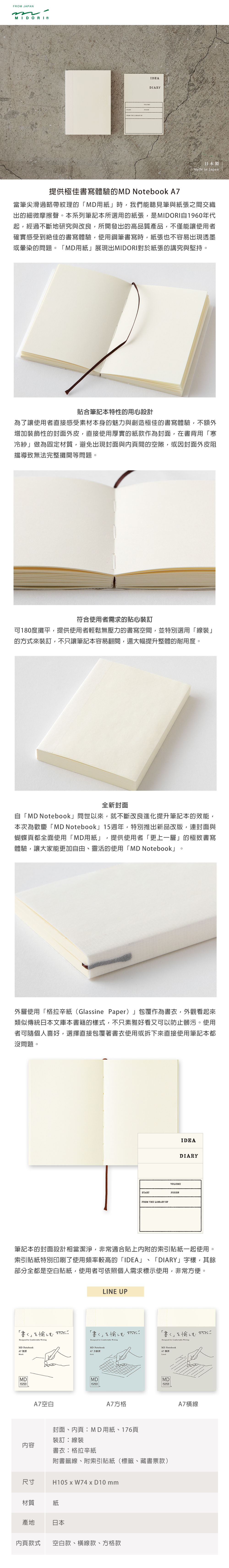 A7手掌大小尺寸,H105×W74×D10mm,合計176頁。