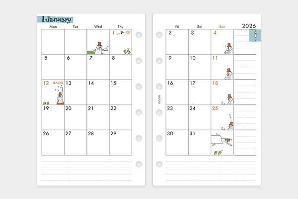 MINI6 M6 可用 2026 歐吉桑 月間+筆記頁 補充內頁|MIDORI 日本