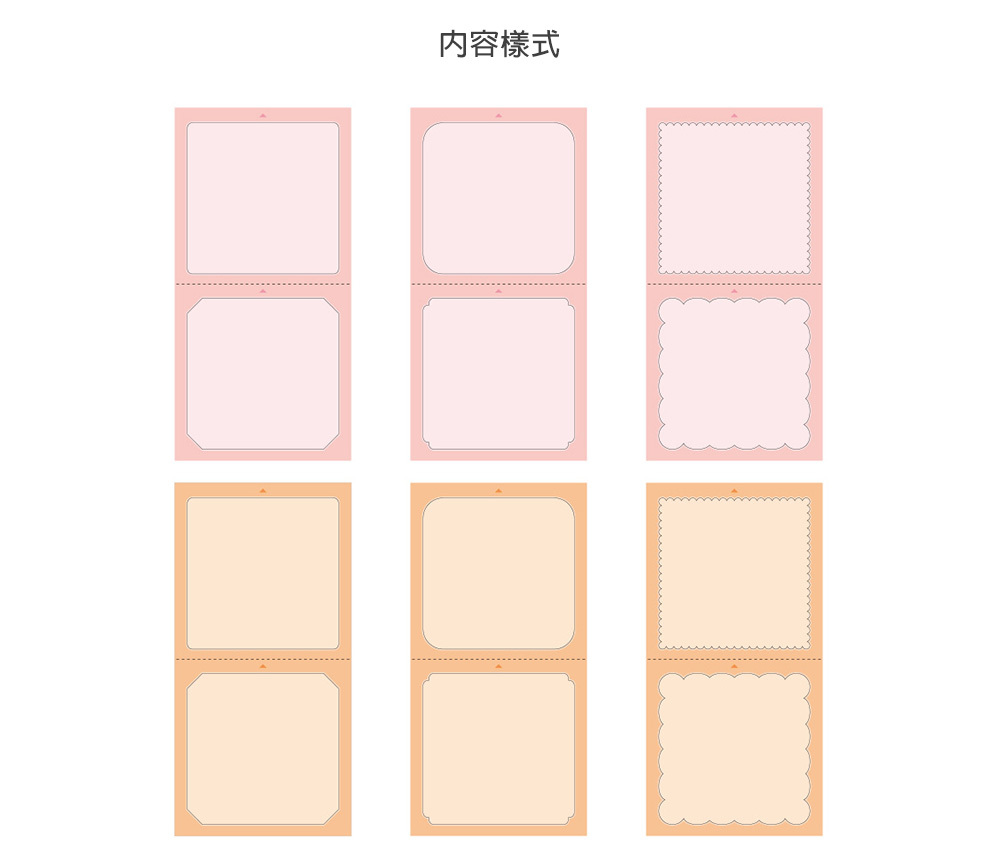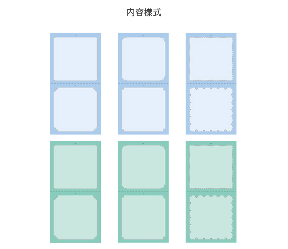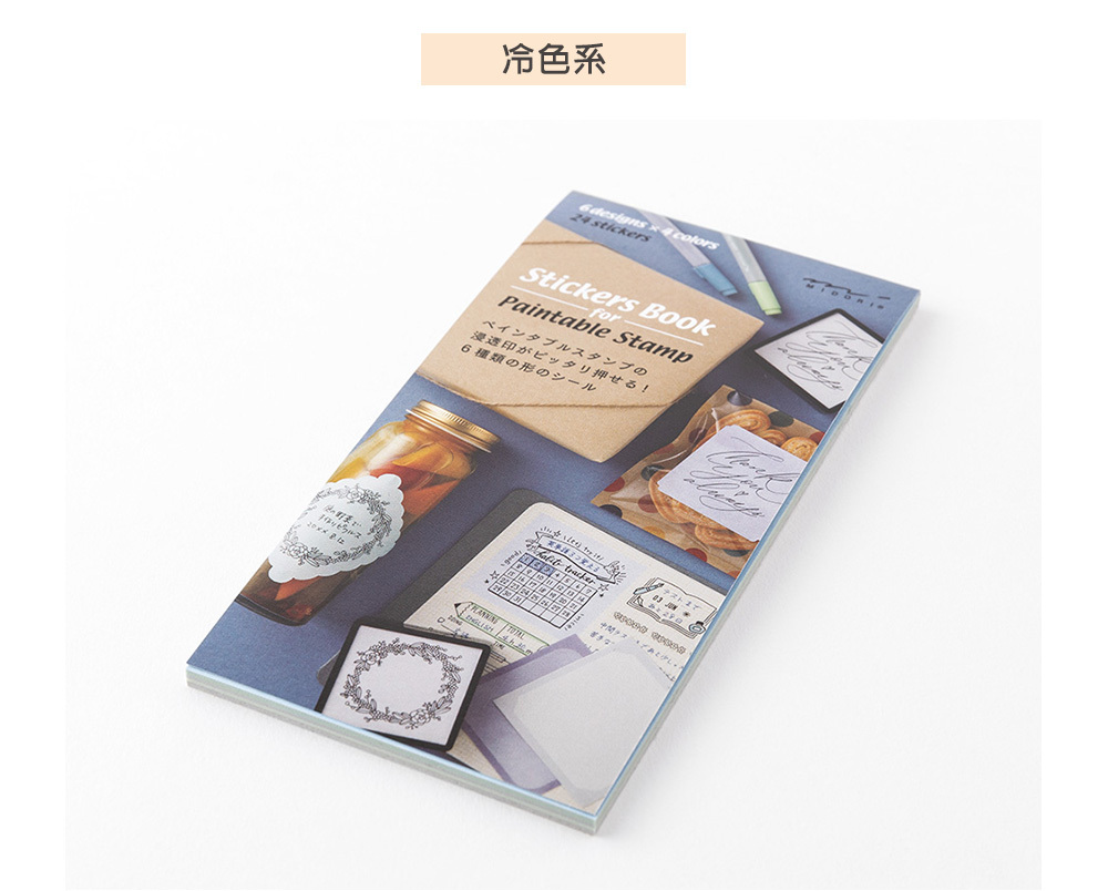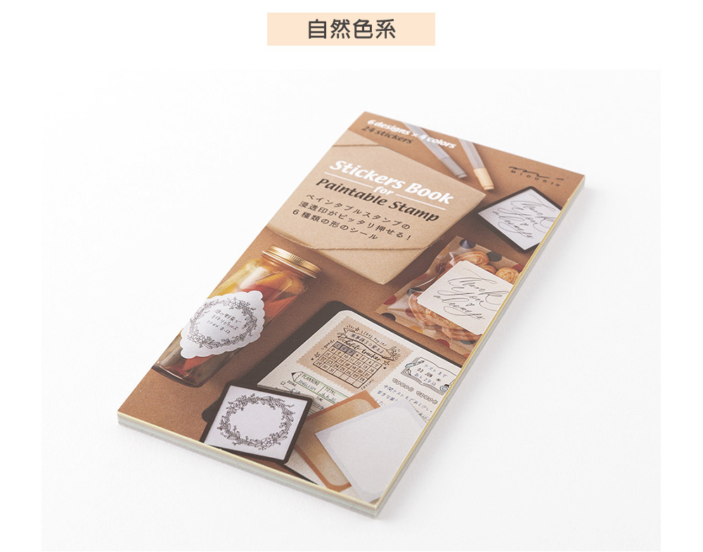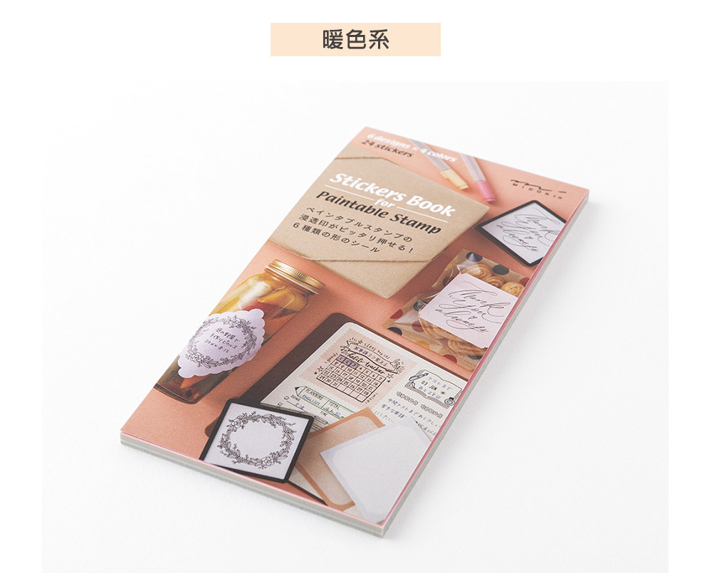本系列專用貼紙的尺寸與浸透印章大小相合,內含6款不同設計,每款有4色,一組共24枚專用貼紙~