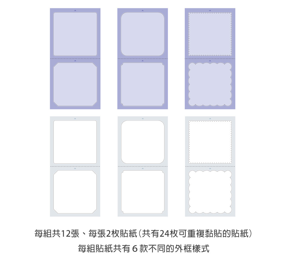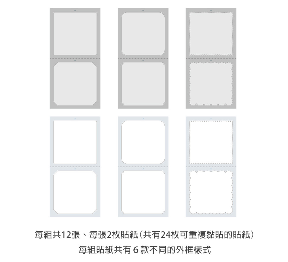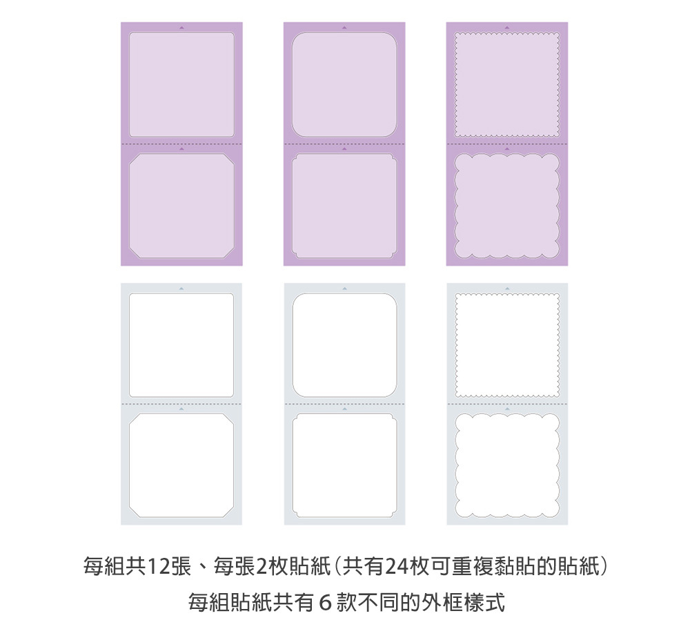 內容:12張膠裝  貼紙24 枚(6種 x 各4色)