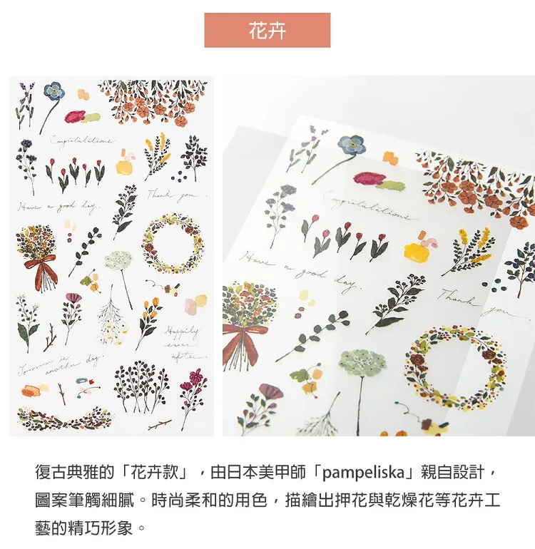 花卉 手繪風插圖轉印貼紙|MIDORI 日本