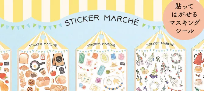 以紙膠帶素材製成的一場貼紙市集,貼上後可撕下的MIDORI水彩和紙貼紙。