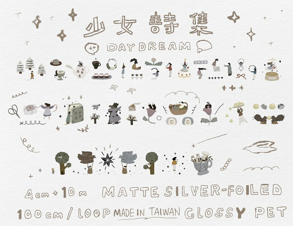 少女詩集 亮面PET膠帶 燙霧銀