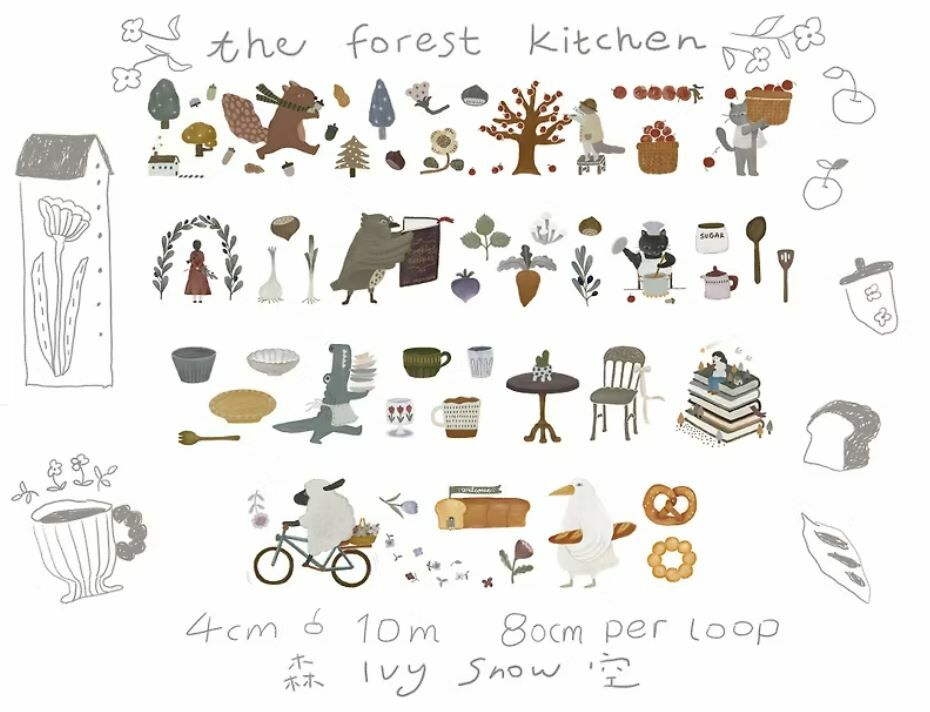 充滿可愛小元素的PET膠帶,搭配後方離型紙設計,可以隨意剪下喜歡的圖案拼貼。