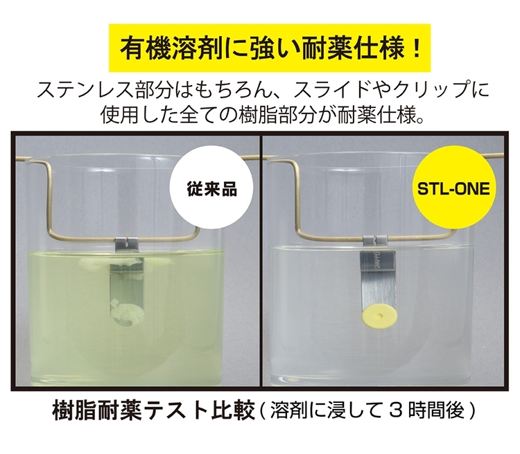 ●具有耐酸抗性,不僅是不鏽鋼部件,就算是自動鎖定滑軌和折刀器的樹脂部件,也都有此特性!
