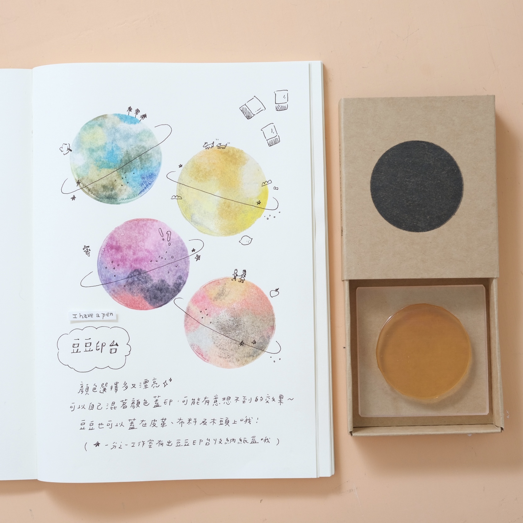 幾何形印章可以產生出許多變化,圖案排列蓋印、不同顏色蓋印、多款幾何拼湊造型等等!
