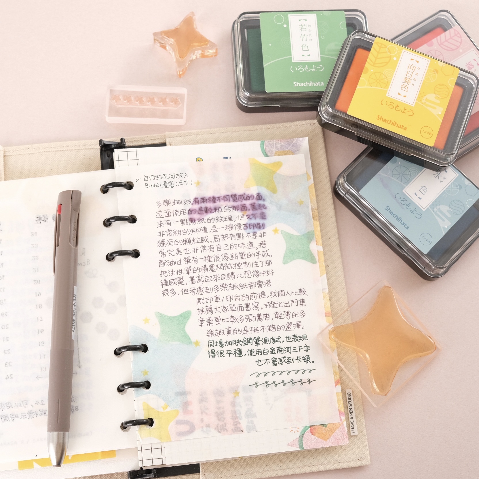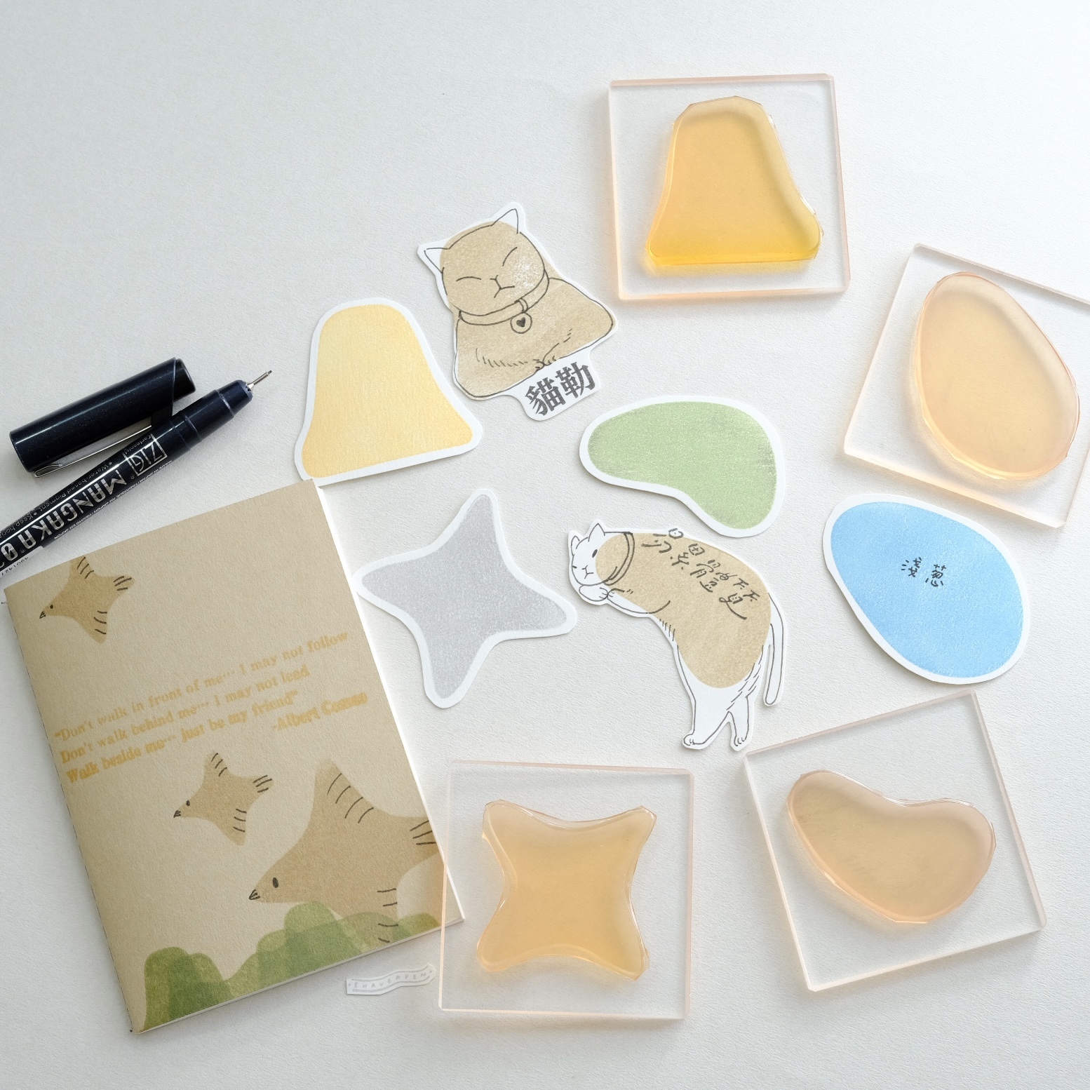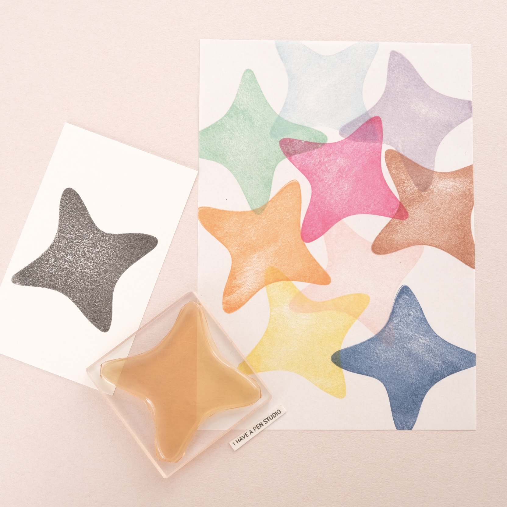 自然幾何造型膠版印章,讓單一顆膠版印章可以局部蓋出多種樣貌,可以用於拼貼點綴或是製作邊框。