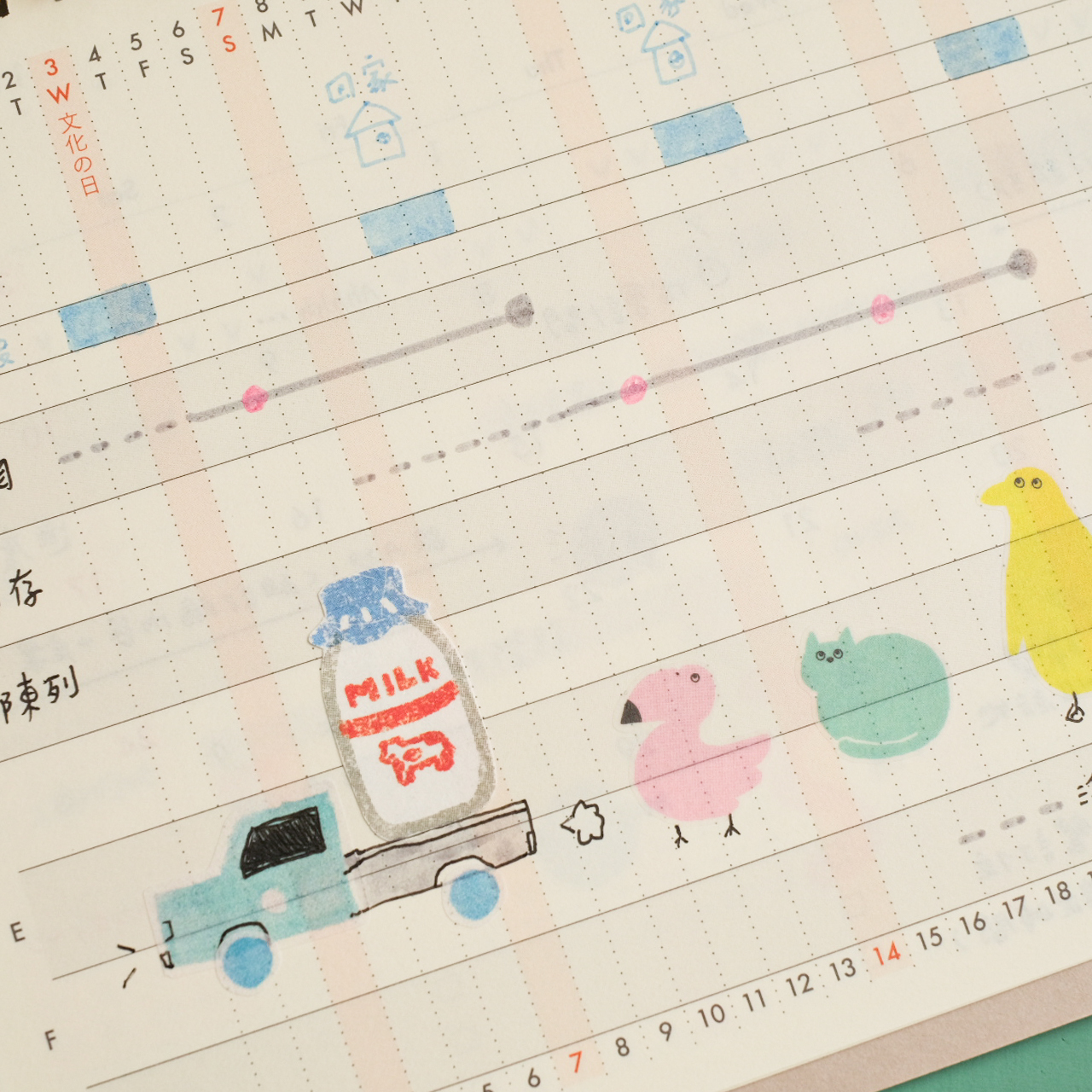 因為是用真實的筆紙描繪,翻拍到電腦保留背景然後處理而成,所以叫做照片形狀貼紙,採用和紙在臺灣印刷,搭配透明底紙,兼具美觀與實用。