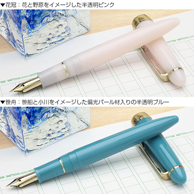 從展現日本自然四季之美的「四季織」系列中,推出了以纖細與清涼景致為主題的「草遊戲」系列。這款鋼筆旨在傳達人們感受到草花、溪流、果實、新雪等自然的強韌與溫柔時的喜悅。每種顏色的設計靈感來自與季節自然互動的遊戲,呈現出透明感十足的效果。敬請品味日本四季之美的色彩魅力。
