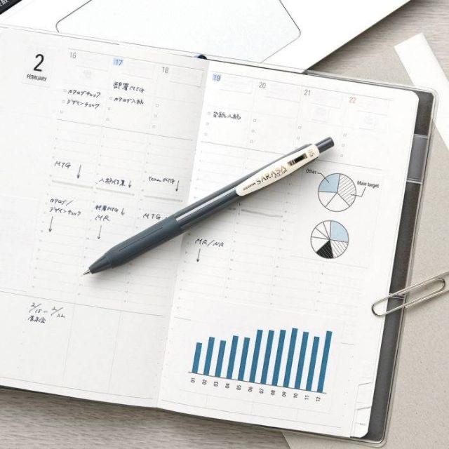 Sarasa 寫出成熟氣質風味,筆夾有如光般閃亮的SARASA金箔設計。