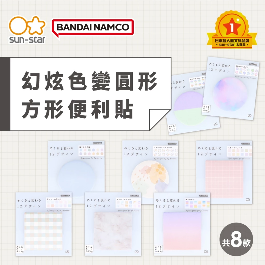 幻炫色變 圓形 方形 便利貼 8種配色|SUN-STAR 日本