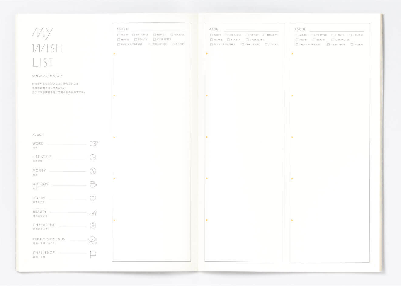 Wish List 願望清單 (6頁WISH LIST、2頁BOOK LIST、2頁MOVIE LIST、2頁MY TREASURE LIST、2頁WORLD MAP、2頁2頁JAPANESE MAP及15頁方格頁), 32頁