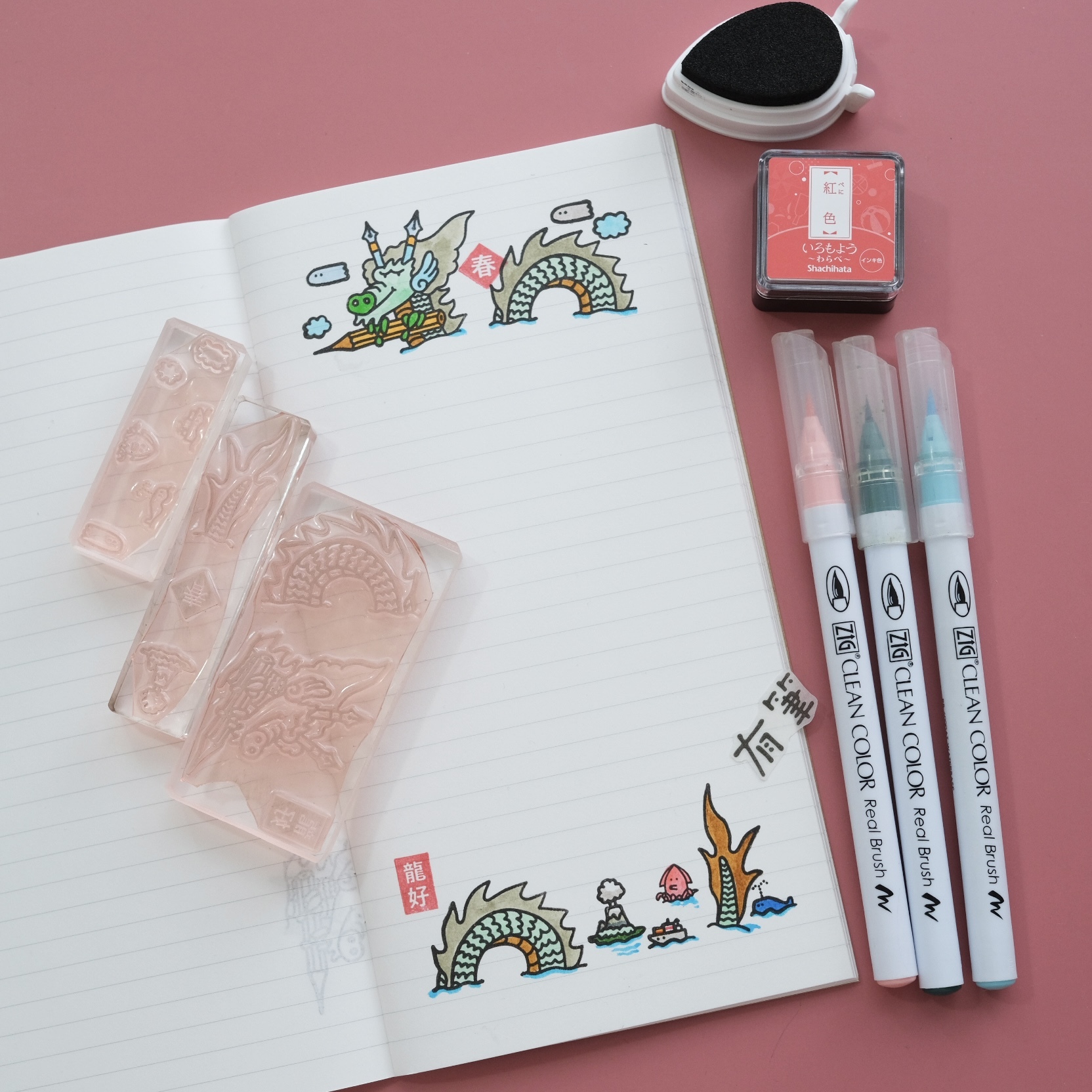 可以自由安排蓋印位置的龍年印章組,龍的身體可以依個人喜好調整,要多長有多長!