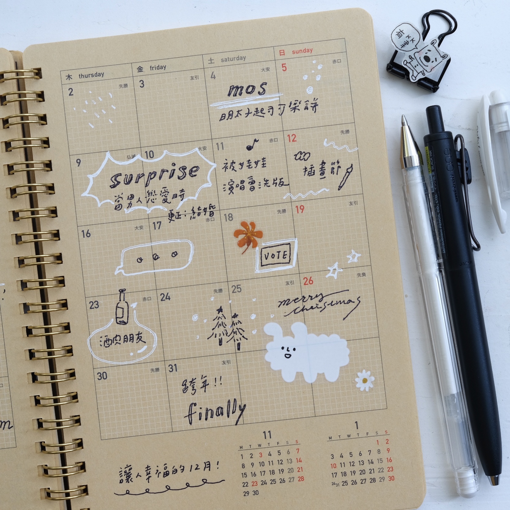 可以寫在黑色紙筆記本的筆,除了黑紙白紙上書寫也是沒問題的喔,顏色是粉嫩的馬卡龍色系