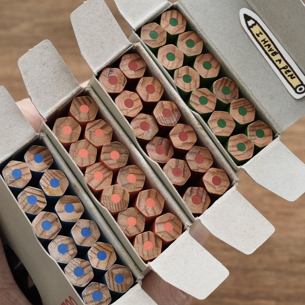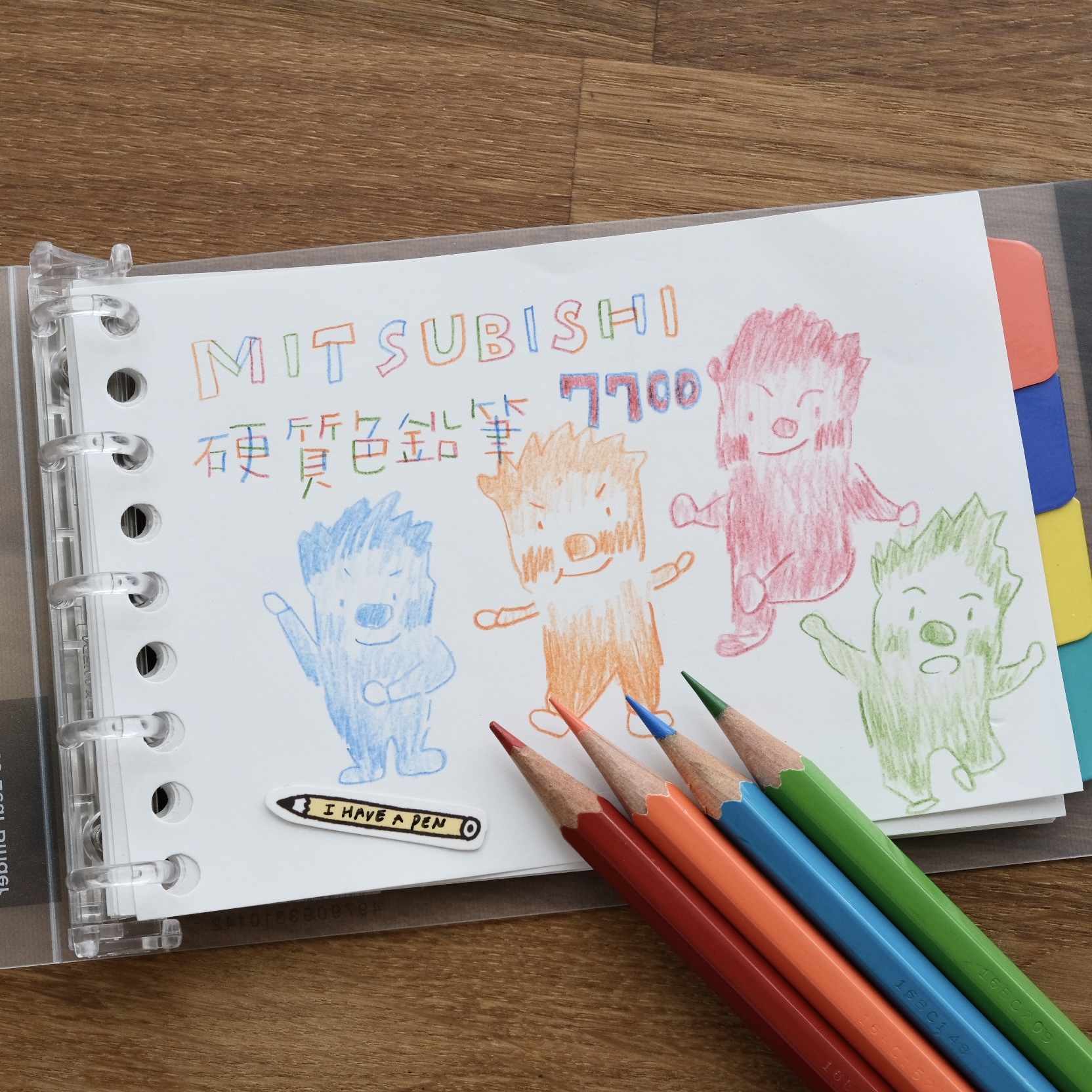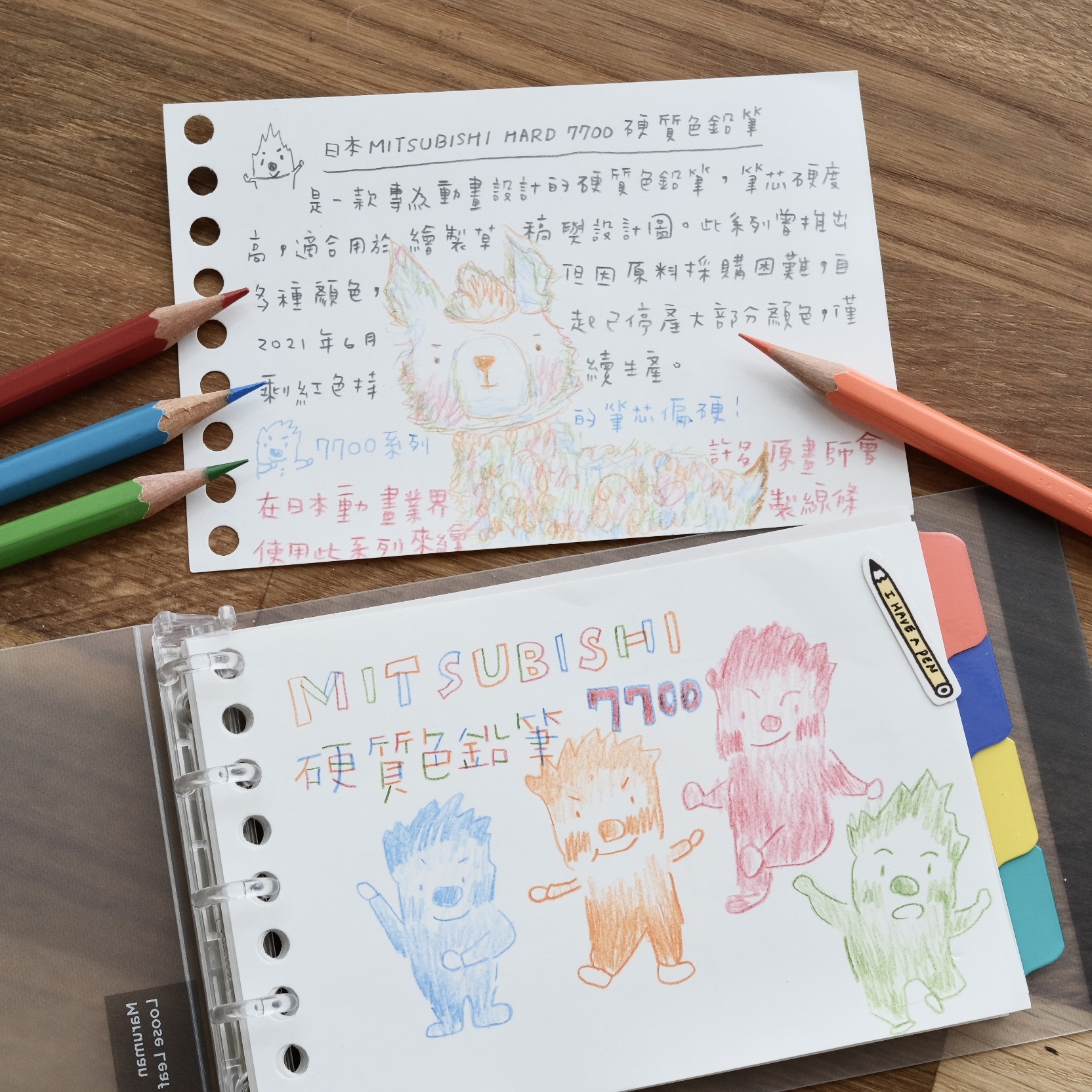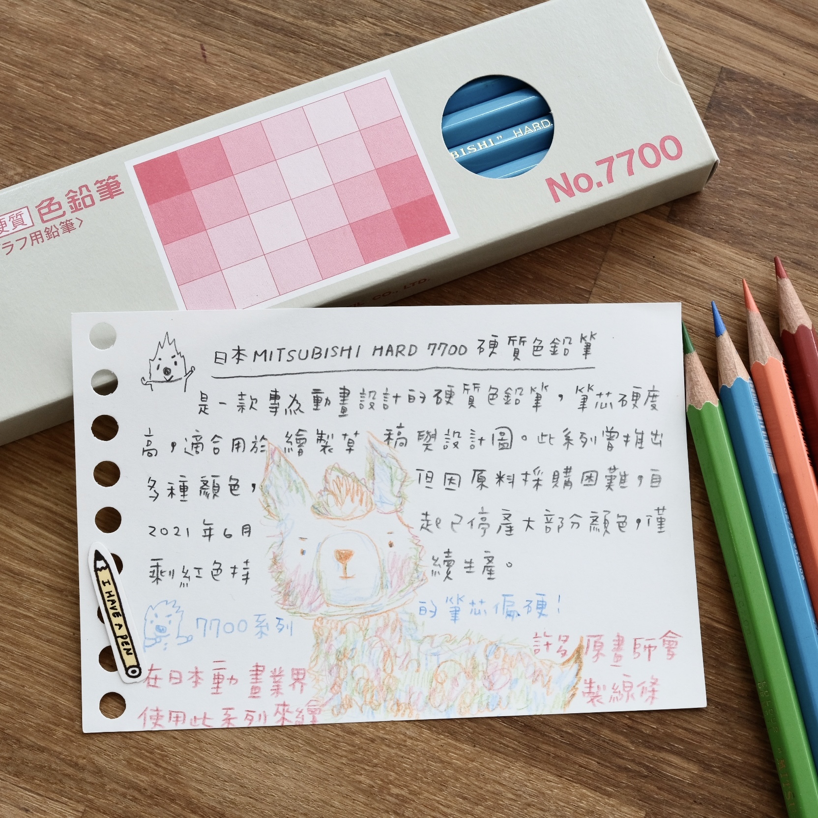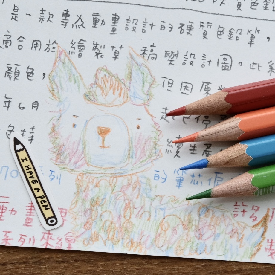 跟一般色鉛筆相比這個筆芯寫感偏硬,優點是可以寫出較細緻的線條,適合拿來寫字畫草圖、