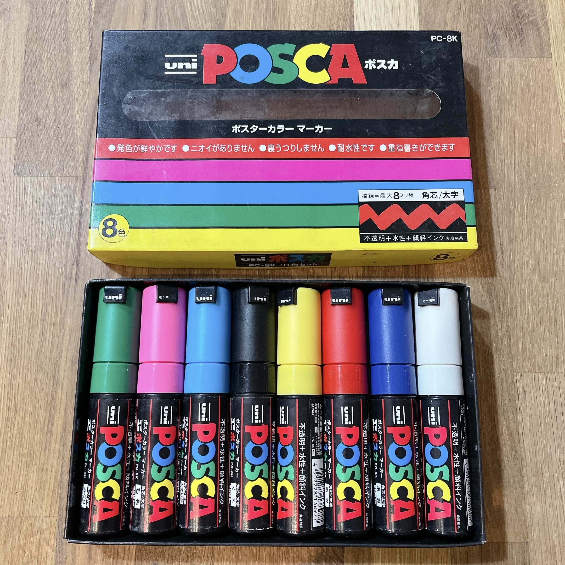 在紙張、金屬、玻璃、塑膠、木質和石頭都可以畫畫書寫,顏色鮮豔,乾掉以後防水,不易褪色。