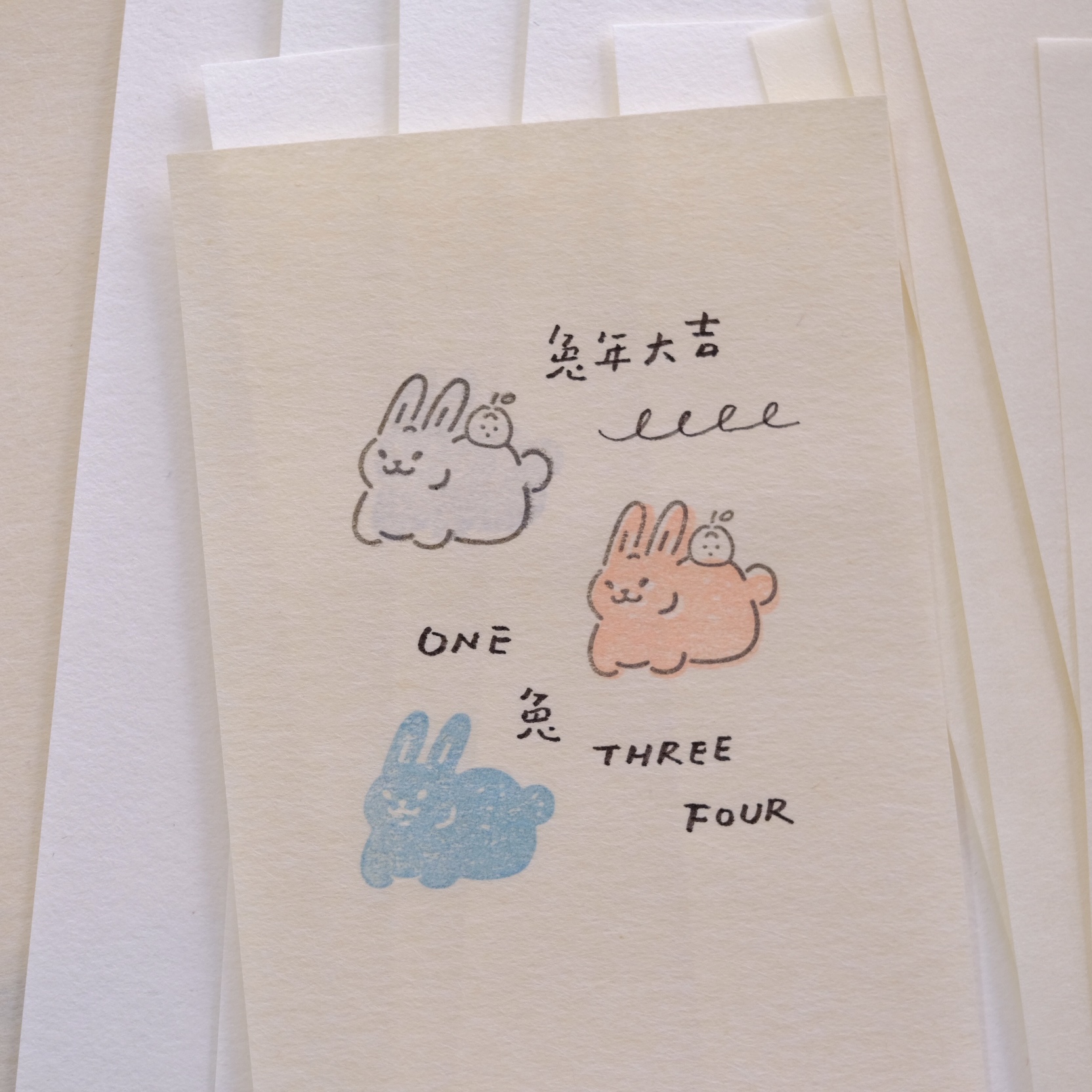 小吉兔木頭印章,兔年讓可愛的小吉兔,來陪伴你共兩款,線條與色塊讓你隨心情發揮與呈現