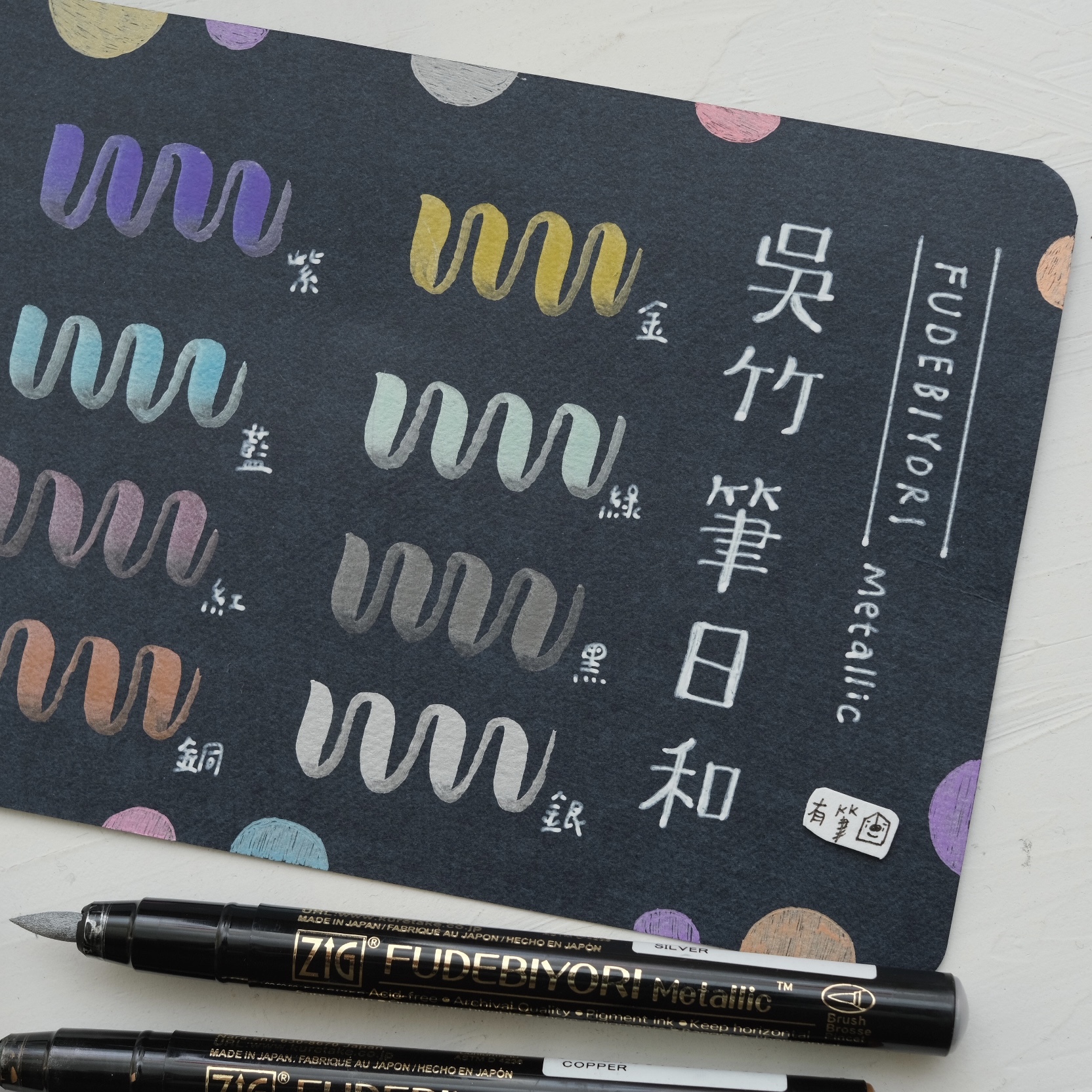 亮麗的金屬顏色,特別適合在深色紙張上表現。
