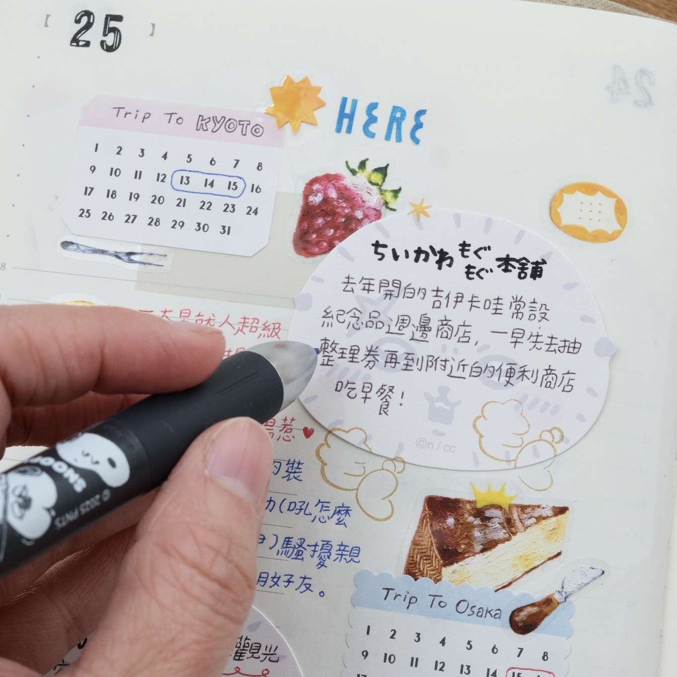 具有設計感的便條紙上標示著標題或是星期,只需要將其貼在筆記本上就可以展現出充滿可愛手繪風的排版。