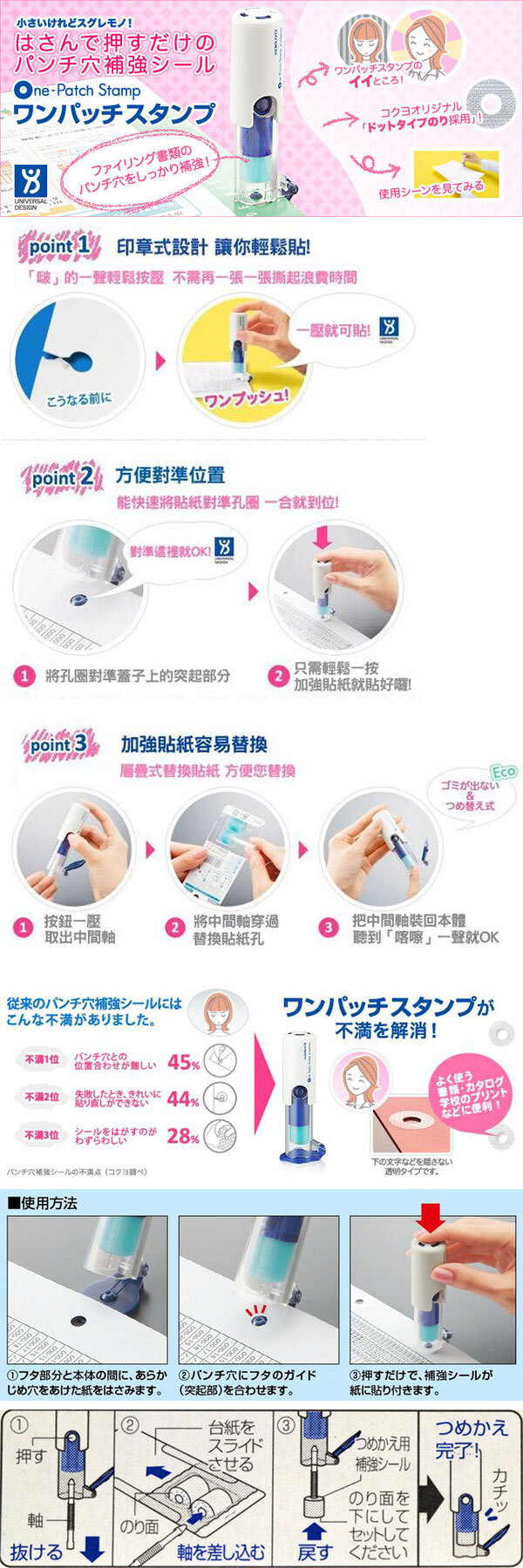 打孔加強章 淺綠 / 藍 / 補充貼|KOKUYO 日本