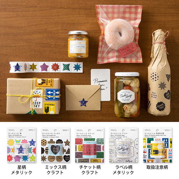 有趣的貼紙設計,可以用作DIY禮物包裝或是手帳拼貼運用,總共有8種貼紙捲類型,請看照片有款式的展開Sample ~~